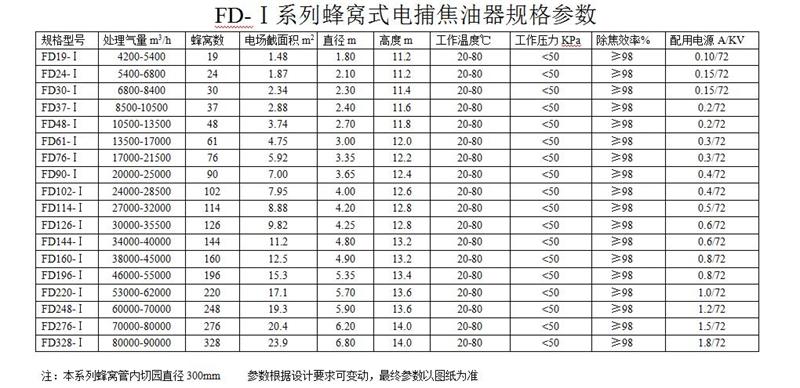 蜂窩式電捕焦油器殼體采用圓筒式結(jié)構(gòu),內(nèi)件沉淀極所采用結(jié)構(gòu)形式類似蜂窩式,蜂窩式的結(jié)構(gòu)是將通道截面為正六邊形。兩個相鄰正六邊形共用一條邊,即靠中間的正六邊形的六條邊均被包圍它的六個正六邊形所共用。用2-3mm的鋼板制成的蜂窩板即可滿足工藝和機械強度的要求。設(shè)備殼體由筒體、器頂封頭與器底斜底組合而成。整個除焦器分為上、中、下3 段, 上、中部為高壓靜電場, 下部為集焦油室。浸漬罐煙氣由下端側(cè)面進入, 凈化后的潔凈氣體由上端頂部由風機排出, 除塵器底部留有人孔維修方便。下端進氣口設(shè)有2 層多孔板型氣流分布板, 使氣體在電場中均勻分布, 中部為高4-5m 的高壓靜電場。 其原理即在金屬導線與金屬管壁(沉淀極板)間施加高壓直流電,使陰陽極之間形成電暈區(qū)。當含焦油霧滴等雜質(zhì)的氣體通過該電場時,吸附了負離子和電子雜質(zhì)在電場庫倫力的作用下,移動到沉淀極后釋放出所帶電荷,并吸附于沉淀極上,當吸附于沉淀極上的雜質(zhì)量增加到大于其附著力時,會自動向下流并從電捕焦油器底部排出,從而達到凈化氣體的目的。蜂窩式電捕焦油器與其他焦油器相比,由于蜂窩式電捕焦油器具有結(jié)構(gòu)緊湊合理、沒有電場空穴,具有筒徑小,占地少,有效截面(氣凈化工作面)大,氣體處理量大成本低,電耗小,收焦油量大且油質(zhì)優(yōu)良,凈化效率高,處理后各種污染物可達標排放的優(yōu)點。達到的技術(shù)指標,可明顯改善操作環(huán)境。